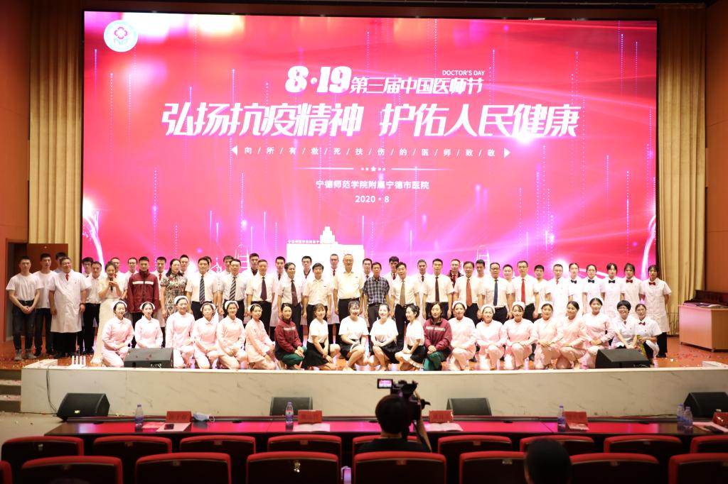 为庆祝2020年“中国医师节”,进一步弘扬抗疫精神,彰显医务工作者护佑人民健康的职责使命,传递党和国家对医务工作者的关心关爱,营造全社会尊医重卫的良好氛围,8月18日,宁德师范学院附属宁德市医院举办以“弘扬抗疫精神 护佑人民健康”为主题的医师节庆祝活动。校党委书记夏良玉、校长魏远竹,宁德市卫健委副主任詹光景出席活动,附属医院党委书记陈子春、院长吴光辉等医院党政班子领导、兄弟单位领导以及医院300多名医务工作者参加活动。附属医院副院长朱忠寿主持庆祝活动。