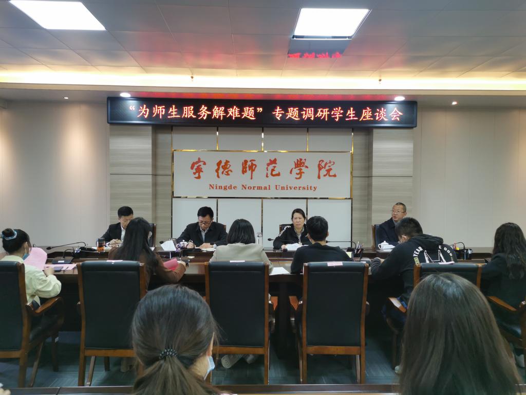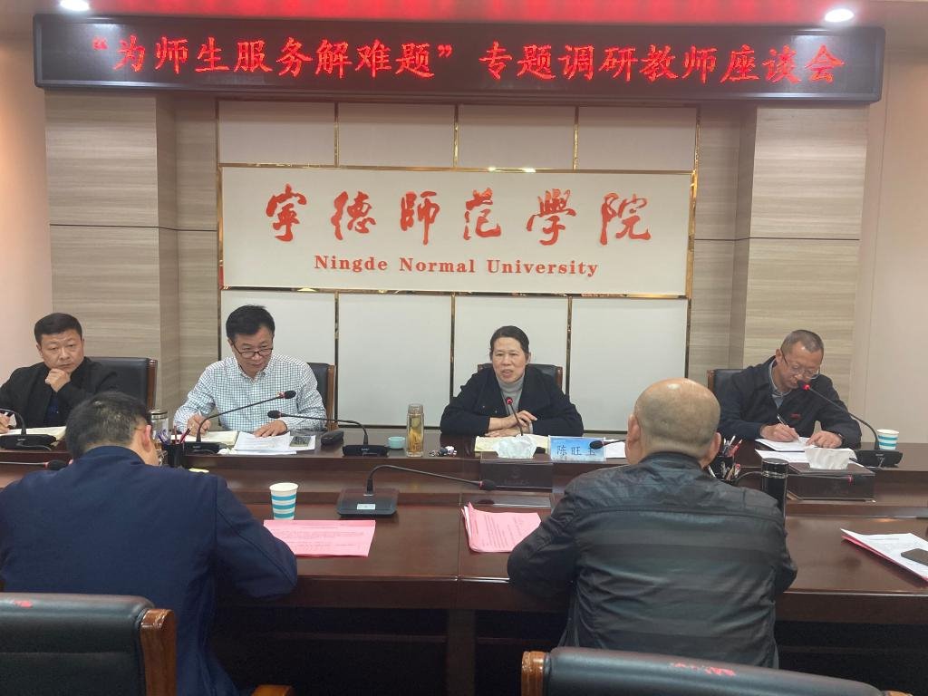 根据校党委工作部署,结合《宁德师范学院关于开展“再学习、再调研、再落实”活动的工作方案》,3月24日、25日,我校分别召开“为师生服务解难题”教师座谈会和学生座谈会,征求师生代表有关后勤、财务、人事服务方面的操心事、忧心事、烦心事。校党委委员、副校长陈旺玉出席座谈会,资产后勤管理处处长周建辉主持会议,财务处处长林启法、人事处副处长龚梓兵、来自各学院的18名教师和25名学生代表参加了座谈会。