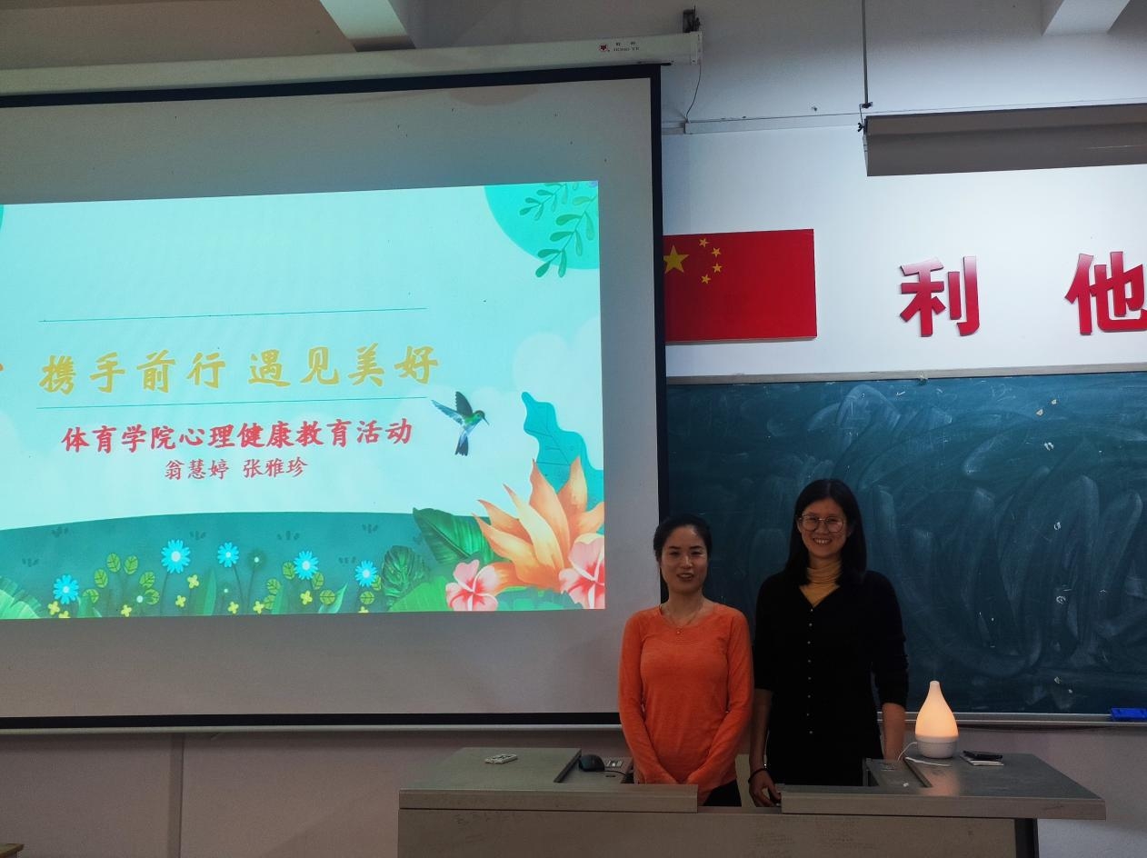 体育学院举办主题为“携手前行,遇见美好”的心理健康教育活动,活动由体育学院教师、国家三级心理咨询师翁慧婷和张雅珍主持,全体2023级学生和新入职教职工参与本次活动。主讲老师带领大家认识了抑郁、抑郁症、焦虑、焦虑症等概念,重点介绍了建立积极心理的“八正法”,并选取其中的“闻香”、“运动”两个元素展开体验活动,通过沉浸嗅觉体验和瑜伽练习,现场示范获得积极的心境状态的方法。