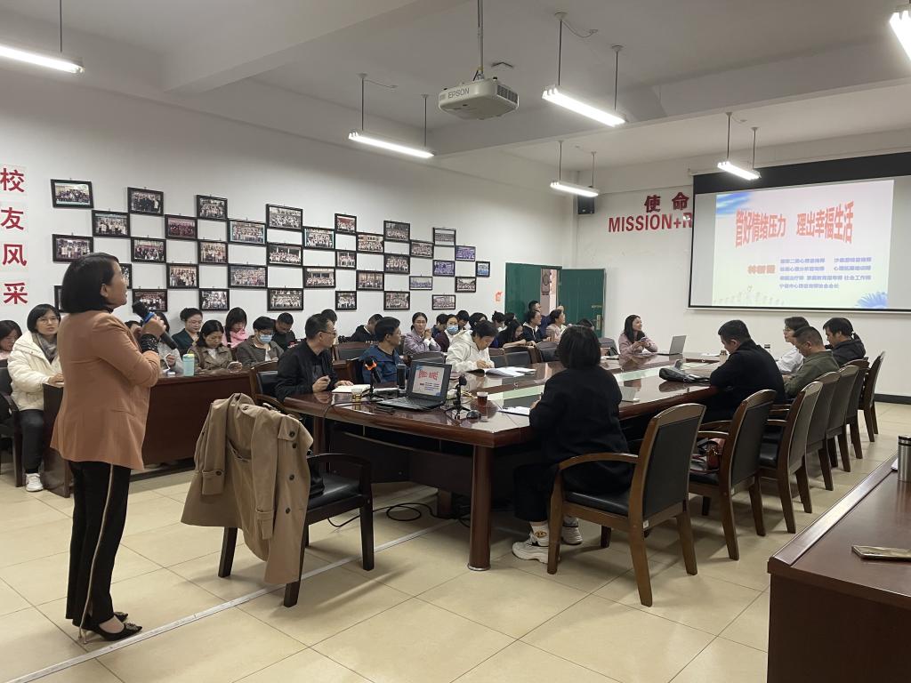 学校高度重视教师的心理健康教育,将关注教职工心理健康作为2023年度师德师风建设的重点工作内容,组织各二级党委举办关爱教师心理健康讲座、沙龙等活动,为教职工开展“心理降压”辅导,帮助教师更好应对工作压力,提高教师自我调适能力,营造健康、和谐、向上的工作氛围。