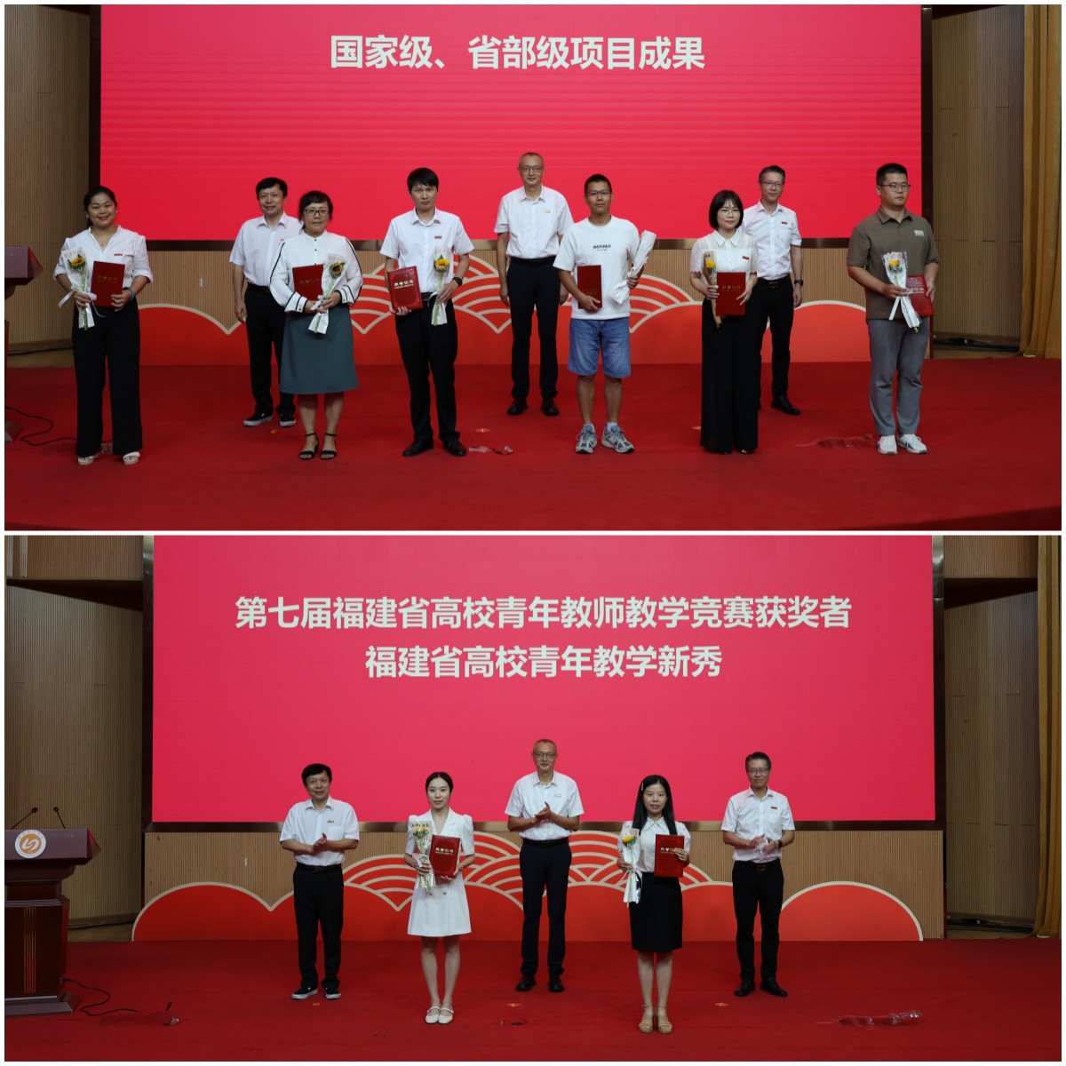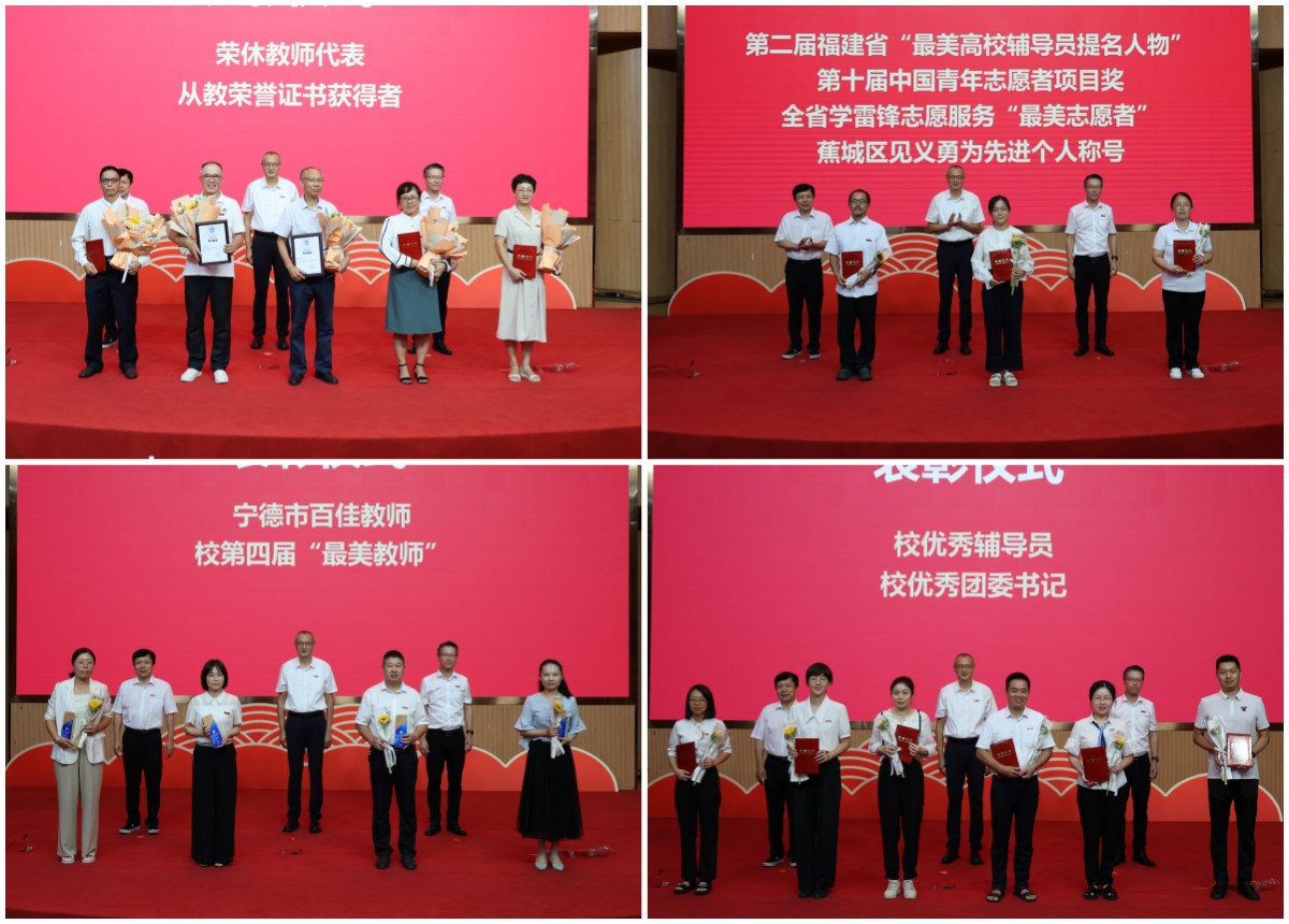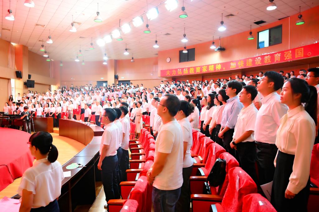 大会在庄严的国歌声中拉开帷幕。校领导为荣休教师、从教荣誉证书获得者、优秀教师、先进个人、先进单位和各类国家级、省部级项目成果获得者等颁发证书,向他们表达崇高的敬意和真挚的祝福,感谢他们为学校发展和建设做出的卓越贡献;为新入职教师佩戴校徽,勉励他们以教育家为榜样,大力弘扬教育家精神,努力成长为“经师”与“人师”相统一的“大先生”,更好地培养德智体美劳全面发展的社会主义建设者和接班人。